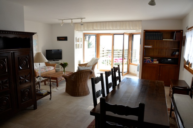 Outside there is a long garden to the back and the side leading down to the beach. The garden is enclosed with access to the beach and sea via a gate. There is a large garden table, chairs and a couple of sun loungers as well as the all important sunbrella. Only 400 metres has you in Carnac village with its shops and restaurant, so everything is at your doorstep.