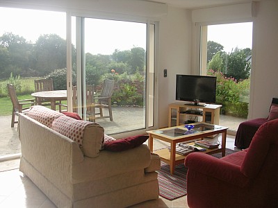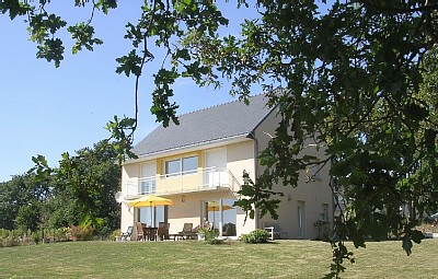 "Kerberry" sleeping 6 Perfectly located for seaside and countryside, just 5 minutes from a variety of lovely sandy beaches. Enjoy the comfort of this eco friendly, spacious, light, modern, south facing detached house, with aspect over fields towards the Petite Mer de Gavres and sea beyond.