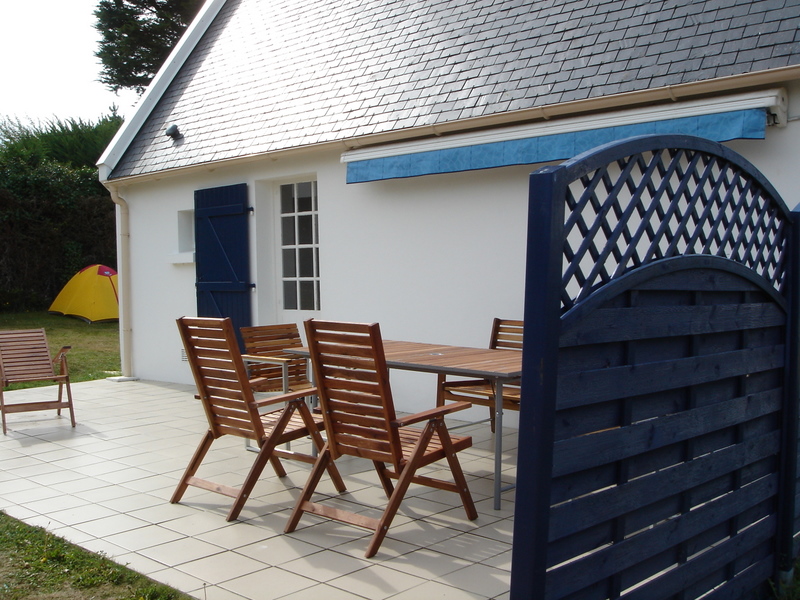 The house is set in quite good sized gardens for a beach property, with grassy areas all around, and to the front a boule court. Around the back is a lovely private patio area and garage to store the garden furniture, electric BBQ, and the table tennis table.